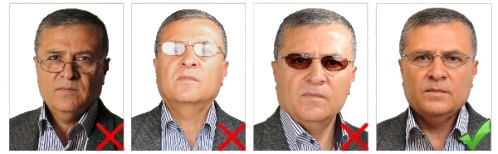 Aşağıda örnekli resimlerle açıklanan özellikte olması şartıyla, İçişleri Bakanlığı Nüfus ve Vatandaşlık işleri Genel Müdürlüğü tarafından istenilen vesikalık fotoğraf ebatı 50 mm x 60 mm, beyaz fonda ve desensiz olmalıdır. Fonda gölgeler oluşmamalıdır |